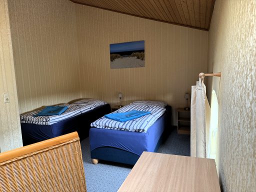 Unsere zweite Ferienwohnung bietet Platz für bis zu 3 Personen und verfügt über zwei Schlafzimmer – eines mit einem Doppelbett (180 × 200 cm) und eines mit einem Einzelbett (90 × 200 cm).