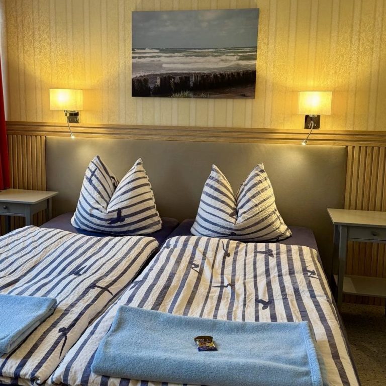 Unsere dritte Ferienwohnung bietet großzügigen Platz für bis zu 5 Personen und verfügt über zwei Schlafzimmer – eines mit einem Doppelbett (180 × 200 cm) und einem Einzelbett (90 × 200 cm), das zweite mit zwei Einzelbetten (je 90 × 200 cm).